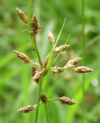 ・茎先に葉と同じような苞が数個あり、その間から枝を出して小穂をつける。