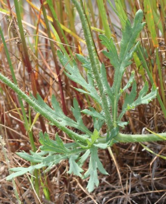 ・葉は1〜2回羽状に深く裂け、両面ともに毛が多い。