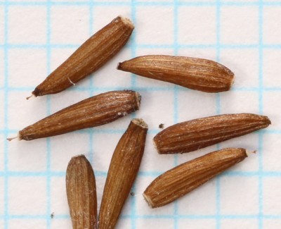 | ・果実は痩果。長さ3mmほどの円柱形で、縦の稜がある。 |
