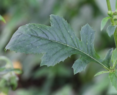 ・葉は長さ10〜20cm、幅4〜8cmの倒卵状長楕円形。下部の葉は羽状に裂ける。