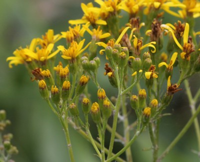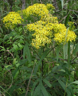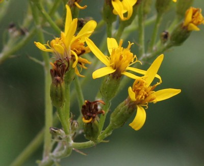 ・茎先に散房状に花をつける。頭花は直径約2cm、舌状花は4〜7個。