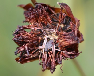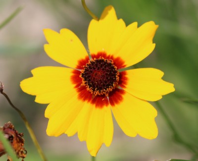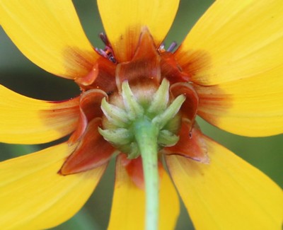 ・頭状花は直径3〜4p。舌状花は8個前後、外側は橙黄色で内側が紫褐色のものが多い。筒状花は暗赤褐色。