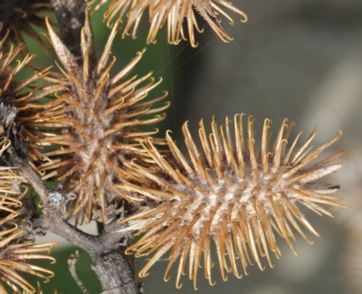 ・果苞は2〜3p、「オオオナモミ」より大きく、カギ状の刺に鱗片状の毛と腺毛がある。