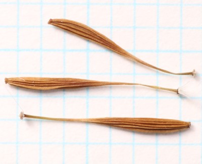 | ・そう果は長さ4〜8mmの紡鐘形。先は細くくちばし状に伸びる。 |