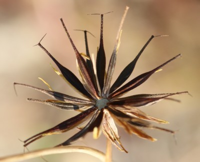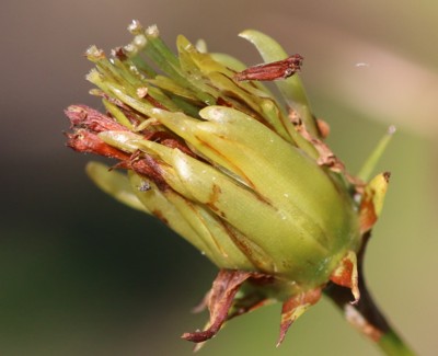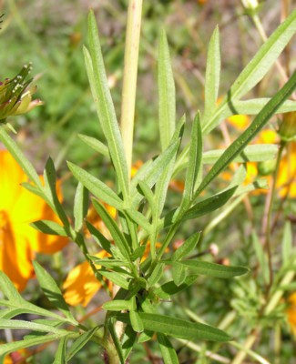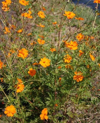 ・頭状花は直径5〜6pで橙黄色。舌状花は普通8個、筒状花は多数ある。