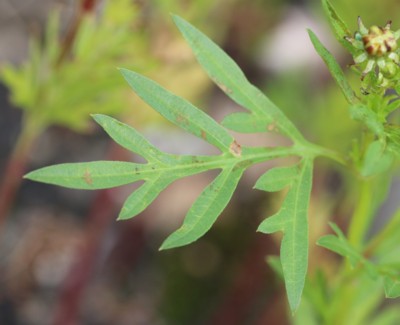 ・葉は対生し、1〜2回羽状に深く裂ける。