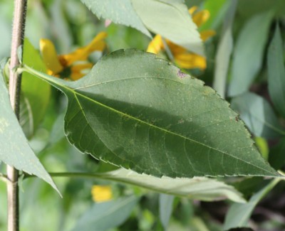 ・下部の葉は対生、上部は互生し、卵状楕円形。