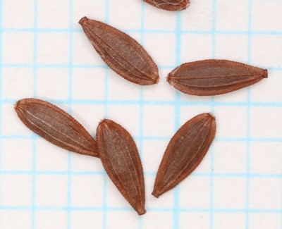 ・果実は痩果。平たくて長さ2〜3mm、両面に3本の稜があり、縁は翼状。