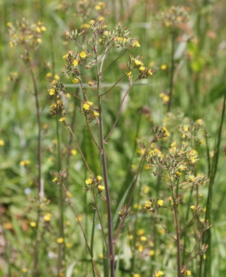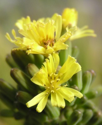 ・茎の先に黄色の頭花を散房状につける。頭花は直径7〜8mmで、舌状花よりなる。