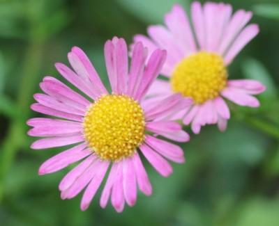 ・花は直径2cmほど。舌状花は白色〜紫色で筒状花は黄色。