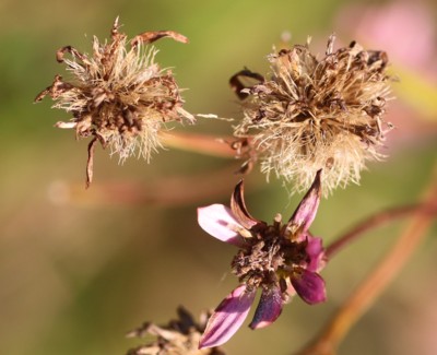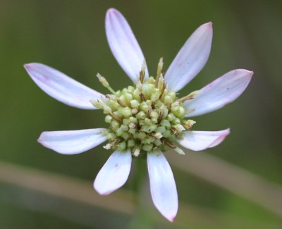 ・頭花は直径約2〜3cm。舌状花は白色でのちに紅紫色を帯びる。