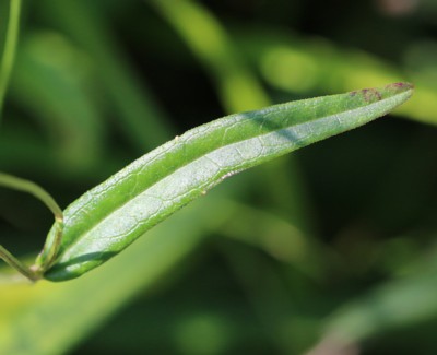 ・下部の葉は線状披針形で長い柄がある。中部の葉は、長さ7〜10p、幅1pの披針形。上部の葉はごく小さい。