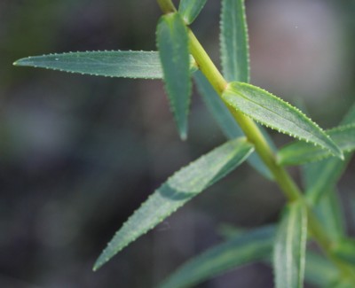 ・葉は無柄で互生、長さ4〜7cmの披針形。
