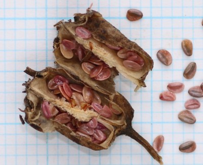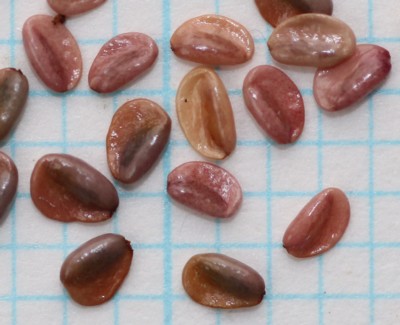 | ・種子は1.5〜2mmほど。扁平でゆがんだ卵形、光沢がある。 |