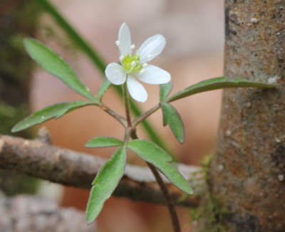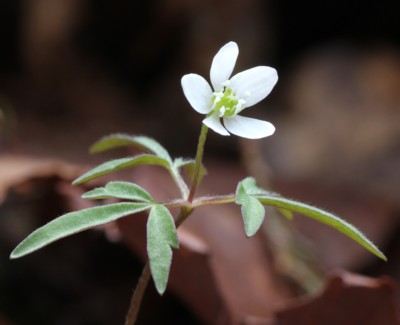 ・根生葉は3出複葉で広卵形。茎葉は3個輪生し、小葉は3全裂する。