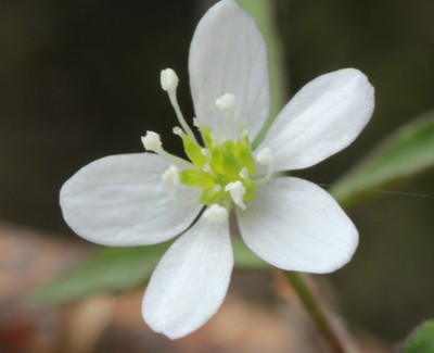 ・花は白色で直径約1cm。花弁は無く、花弁状の萼片が5個ある。萼片は長さ約5mmの長楕円形。