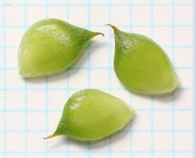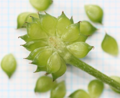 | ・痩果は長さ約4mmの扁平な広倒卵形で花柱が残る。 |