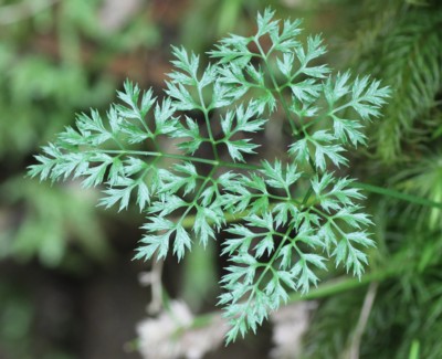 ・葉は3回3出複葉。小葉は「セリ」の葉のように切れ込む。