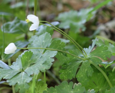 同じ仲間「イチリンソウ」「サンリンソウ」「アズマイチゲ」など。花茎を2本出し、2輪の花をつけることからこの名があるが、結構3個ついてるものも多かった。