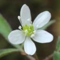 ・茎頂に花茎を出し、直径2pほどの白い花を普通2個(3個の場合もある)つける。