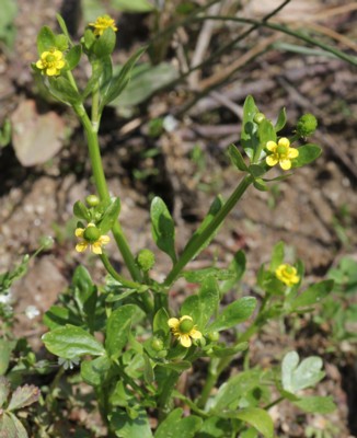 ・葉は掌状に3深裂し、裂片はさらに細かく裂ける。