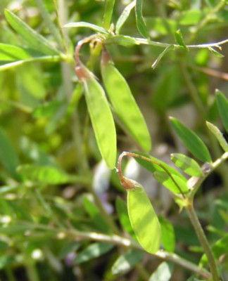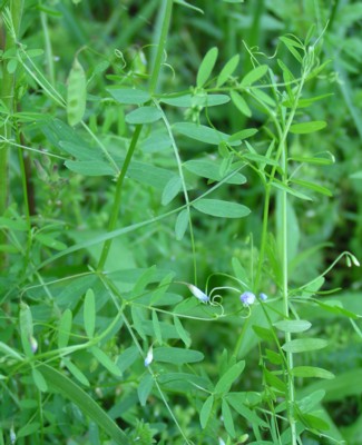 ・葉は8〜15個の小葉からなる羽状複葉で頂小葉は巻きひげになって他のものにからむ。小葉は長さ1.2〜1.7cm、幅2〜4mmの狭長楕円形。