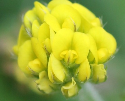 | ・葉腋から花柄を出し、長さ3〜4mmの黄色の蝶形花を20〜30個集まって球状につける。 |