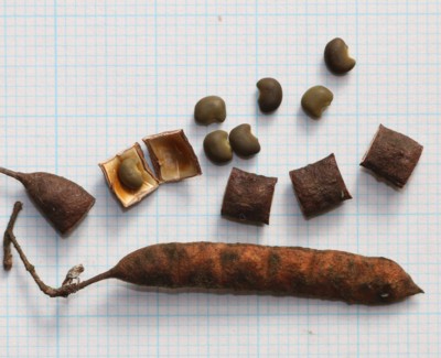 | ・果実は節果、長さ3〜5cmで6〜8個の小節果からなる。種子は緑褐色、腎形でやや扁平。 |
