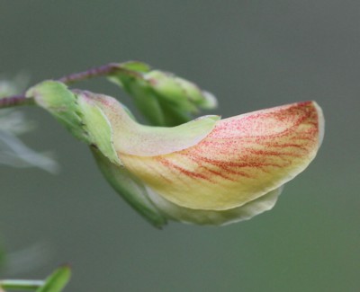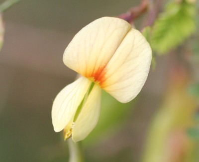 ・葉腋から柄を出し、長さ約1pで淡黄色の蝶形の花をつける。