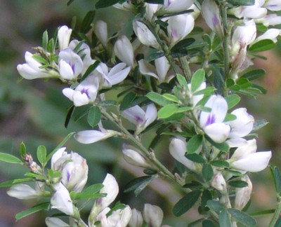・葉腋に蝶形花を数個ずつつける。花は長さ約6o、黄白色で旗弁に紅紫色の斑紋がある。