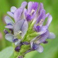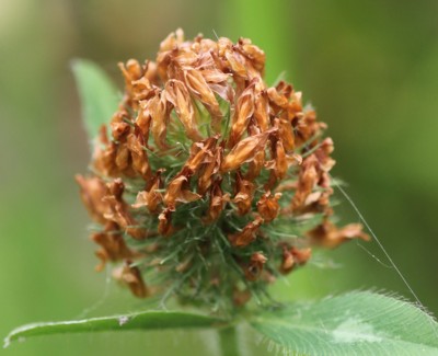 ・上部の葉腋に紅紫色の多数の蝶形花を球状につける。花は長さ約1.3〜1.5cm。