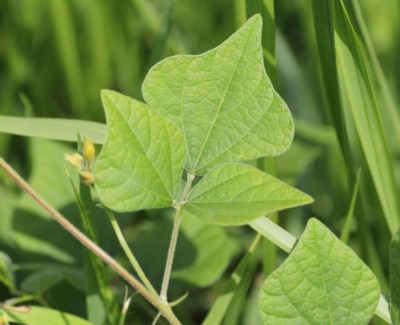 ・葉は3小葉からなり、小葉は長さ、幅とも1~3cmの卵状菱形。