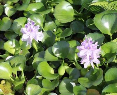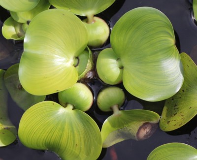 ・葉柄は長さ5〜15cmで中部がふくらみ、浮き袋の役目をして水面に浮く。