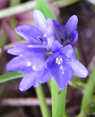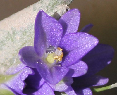 ・花序は葉より低く、直径1.5〜2pで青紫色の花を数個つける。