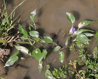 同じ仲間「ミズアオイ」は、葉より高い花序を出す。