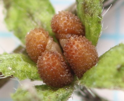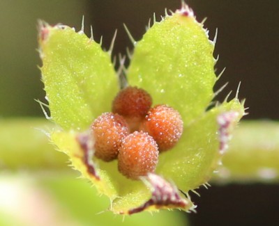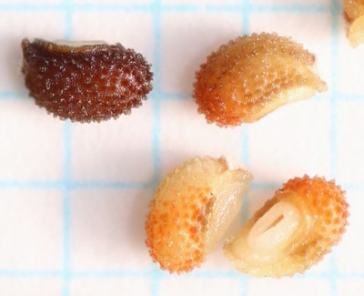 | ・分果は長さ1.5mmほどの楕円形。背面は丸く、イボ状突起が多数ある。 |