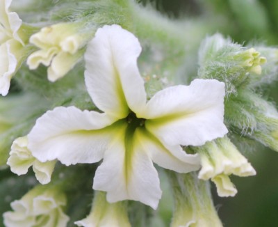 | 花冠は直径約8mm、筒部は6〜7mmで、先は5裂して平開する。 |