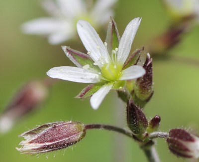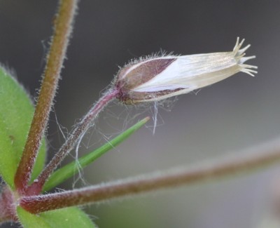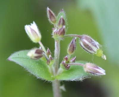 本種の花柄は萼片より長く、「オランダミミナグサ」の花柄は萼片と同長か短い。