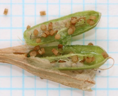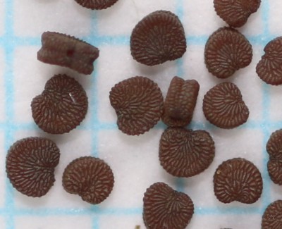 | ・種子は長さ0.6〜0.8mm、厚さ0.3〜0.4mmの半円柱形。 |