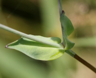 ・全体に粉白色を帯びる。葉は対生、長さ3〜5cmの卵形〜卵状披針形で、基部は茎を抱く。