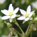 ・茎の上部の葉腋から細い花柄を出し、白色で直径約5mmほどの5弁花をつける。