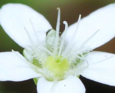 ・花は直径約1cmで白色。花弁は5個で長卵形。
