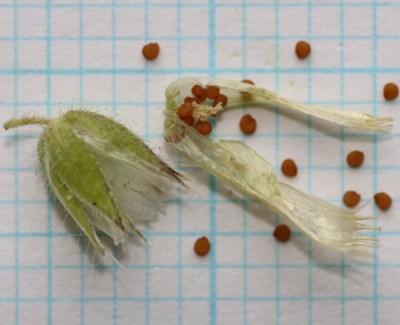 | ・全体に軟毛と腺毛が多く、葉は長さ1〜2cm、幅4〜12mmの卵形。 |