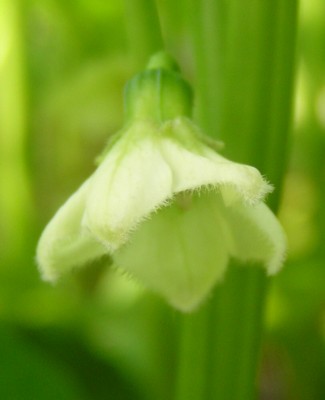 | ・葉腋から長い花柄を出し、淡黄白色の花を下向きにつける。 |