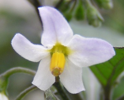 ・茎の途中から枝を出し、直径6〜7mmの白い花をつける。花冠は深く5裂し反り返る。