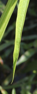 2015年10月---写真を追加しました。前回の写真よりも葉が細いので、よく似た「アギナシ」かと思いましたが、葉先が尖っていることから本種と判断しました。「アギナシ」の葉先は尖らずに丸みを帯びるようです。 |