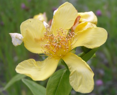 ・茎頂に直径4〜6cmの花を数個つける。花は黄色で、花弁は5個、巴状にねじれるのが特徴。