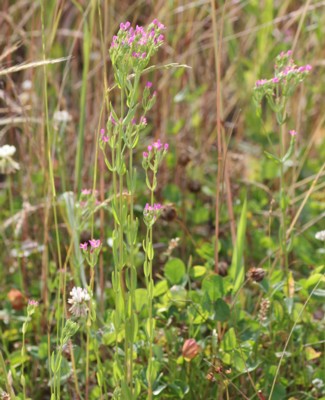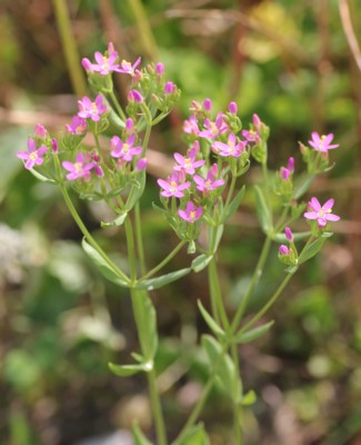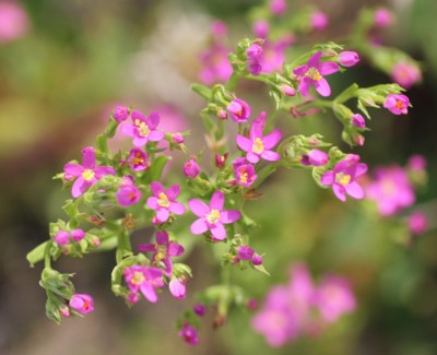 ・茎の上部で分枝し、直径8mmほどの花を多数つける。花はピンク色で中心は白色、深く5裂する。