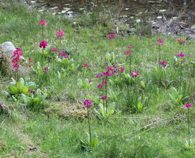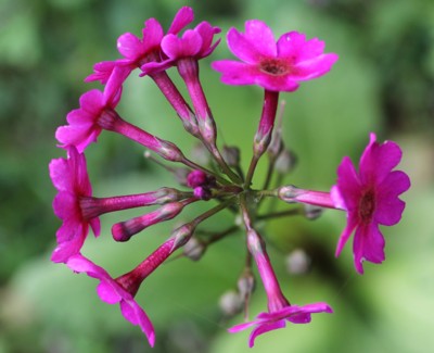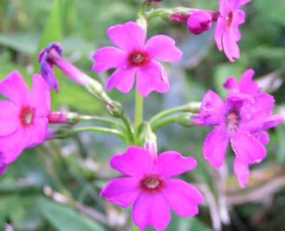 ・高さ40〜80pの花茎を伸ばし、上部に2〜5段輪生状に紅紫色の花をつける。花冠は直径2〜2.5p。