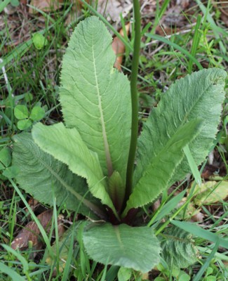・葉は長さ15〜40pの楕円状へら形で、根ぎわに集まってつく。